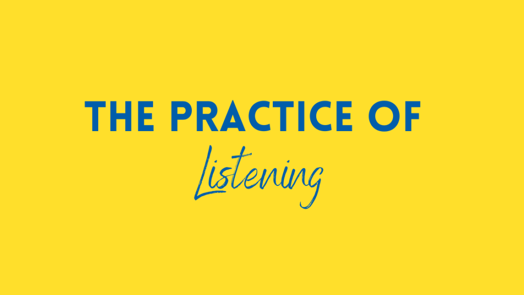 You can set the intention to listen in connection with a certain person, or a time of day, or even a room. You could decide: every time I turn my attention toward this person, I will take a minute to listen before speaking. Or you could say: every morning at breakfast, I will emphasize listening. Or, every time I enter a Zoom meeting, I will listen for a few minutes before I share what is on my mind.