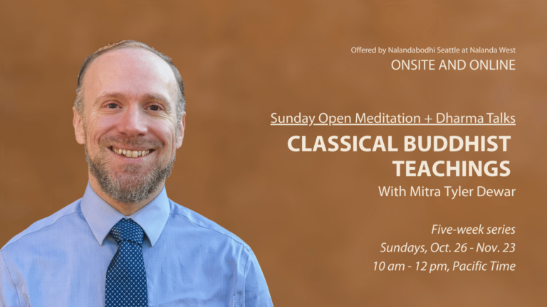 Sunday Open Meditation with Dharma Talks by Mitra Tyler Dewar on Classical Buddhist teachings