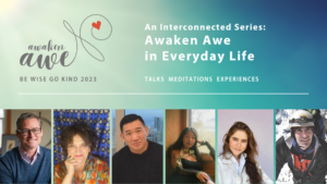 How does the experience of awe, and inquiry into its nature, help us feel fully alive and able to cultivate kind connections in our global society?Please join us for this year’s Be Wise Go Kind: Awaken Awe – an opportunity to deeply inquire into the nature of awe, going beyond hope and fear, and an invitation to make it a lifelong path.