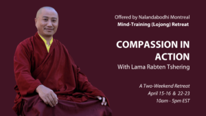 Lojong (“mind training” in Tibetan: བློ་སྦྱོང་།) is a Buddhist practice that helps develop the awakening mind (bodhicitta) through pithy, condensed instructions.NB Montreal is offering a two-weekend retreat with Lama Rabten Tshering teaching on Lojong and putting compassion into action.
