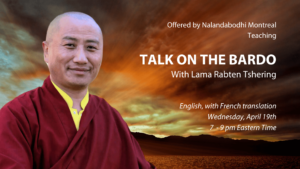 What happens in between two moments? What is actually a moment? How can this present moment be a source of liberation?Hosted by NB Montreal, Lama Rabten Tshering will give a talk on the Bardo and how to relate to this present moment and moments in-between.
