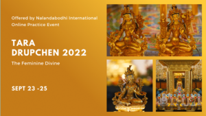 All wisdom traditions, including Buddhism, say that the antidote to fear is loving-kindness. In Vajrayana Buddhism, the figure of Tara symbolises loving-kindness and compassion — and a strong resolve to dispel the fears of all beings. She is like the mother of the Buddhas—the feminine divine. At the same time, the Tara-principle is something we all have: buddha-nature. How to call upon Tara? How to ask for her guidance? And, ultimately, how to recognise the buddha-nature within ourselves?We joyfully announce the seventh annual Tara Drupchen to be held by the Nalandabodhi International sangha: September 23th – 25th. This weekend’s practice intensive includes sadhana or ritual practice, meditations, and teachings from Nalandabodhi teachers. All are welcome to attend online, make prayer requests, and offer positive aspirations by registering for this free event. Please join us in connecting with The Feminine Divine – Tara.