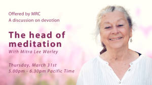 How to uncover our true heart of devotion? Hosted by MRC, Mitra Lee Worley will lead us in an exploration of devotion, from foundational buddhist perspective up to the Vajrayana. Please join this discussion on the head of meditation.