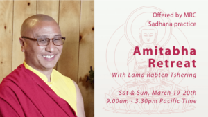 Amitabha Sadhana Practice is a deity yoga practice where one meditates on the form of Amitabha Buddha while reciting his mantra, on behalf of the departed as well as supplicating for the well-being of those near and far. Hosted by MRC, please join Lama Rabten Tshering in this annual Amitabha Weekend Retreat for the benefit of the living and the deceased.