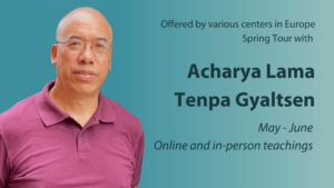 From a talk about the power of mind to Mahamudra Practice within the Karma Kagyu Tradition, please join the various centers (online) in Europe that are hosting Acharya Lama Tenpa Gyaltsen in his tour from Mid-May till June. At the request of Dzogchen Ponlop Rinpoche he will give various teachings and guide us in meditation practice.