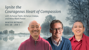 Ignite the Courageous Heart of Compassion, Nalandabodhi’s annual Winter Retreat, will be held online via Zoom and onsite at Nalanda West from Thursday, December 28 to Monday, January 1.Winter Retreat will include morning and afternoon meditation sessions plus an evening Mahamudra meditation, with teachings and contemplations on the 37 Practices of a Bodhisattva and Lojong Mind Training.