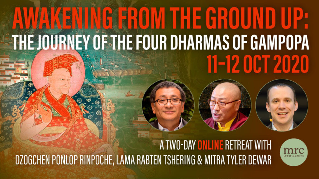 Join us for MRC’s first-ever public event with Dzogchen Ponlop Rinpoche, Lama Rabten Tshering, and Mitra Tyler Dewar, entitled: “Awakening From the Ground Up: The Journey of the Four Dharmas of Gampopa.”