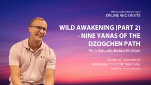 What if everything is already perfect, and we just haven’t realized it? Please join Karunika Joshua Erickson in exploring the nine yanas of the Dzogchen Path. Hosted by Nalandabodhi Taipei, this course will follow the pith instructions from the seminal work Wild Awakening by the Dzogchen lineage holder, Dzogchen Ponlop Rinpoche.
